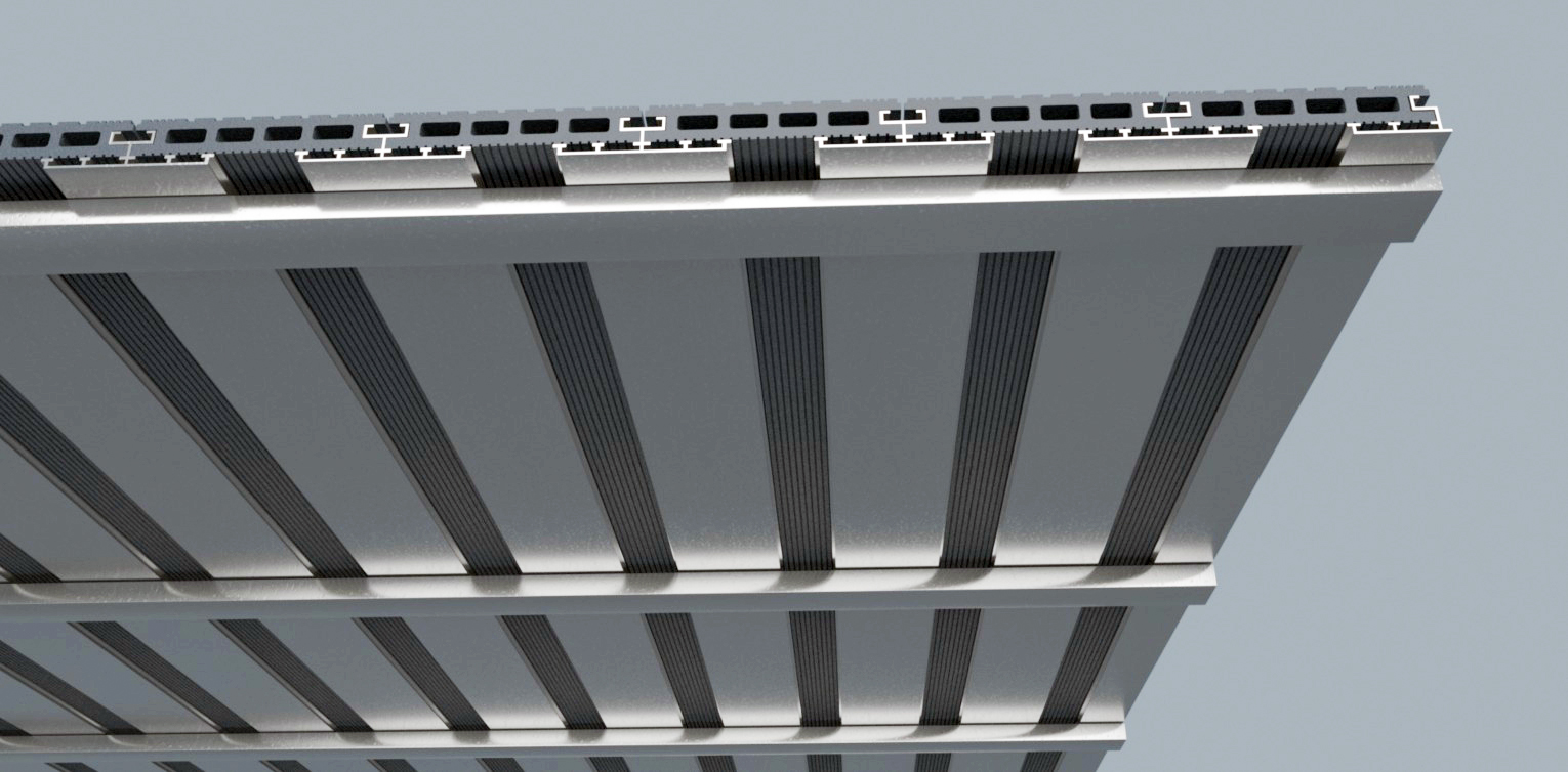 Patentiertes Schienensystem für einen dichten und stabilen Boden.